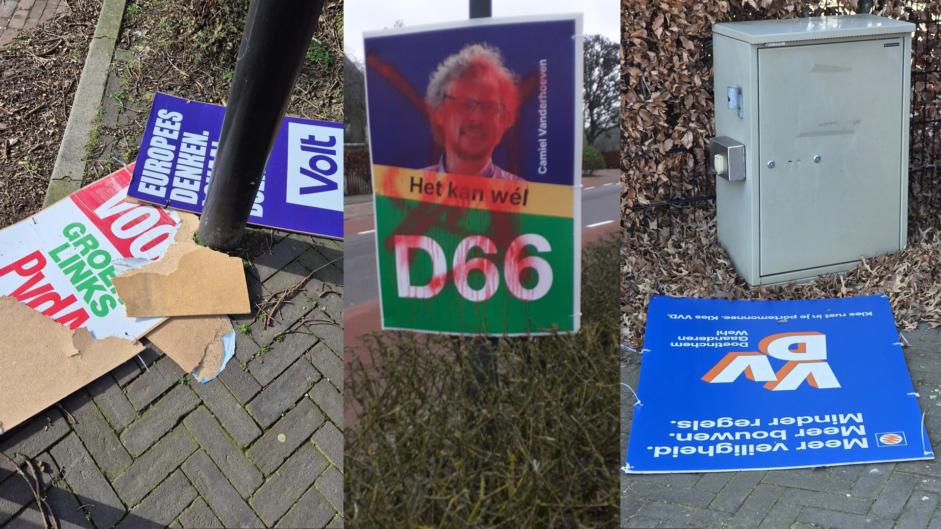 In Wehl, gemeente Doetinchem was het bij meerdere partijen raak. Bij het station zijn op meerdere plekken borden van onder andere GroenLinks-PvdA, Volt en de VVD vernield. Stan van Pul, Raadslid van de VVD, reed toevallig langs de locatie en zag de borden in de bosjes liggen. “Ik denk dan meteen: blijf van andermans spullen af”, reageert Van Pul. “Alle mensen van de partijen doen ontzettend hun best.”