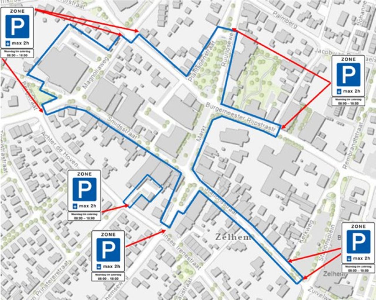 Na invoering, geldt in de blauwe zone een maximale parkeerduur van 2 uur, van maandag t/m zaterdag, 08.00 – 18.00 uur. De zone wordt aangeduid met verkeersborden E10/E11 en blauwe belijning. Belanghebbenden kunnen binnen zes weken bezwaar indienen tegen het verkeersbesluit. Voor inwoners en ondernemers binnen de blauwe zone, zonder parkeergelegenheid op eigen terrein, is een ontheffing mogelijk.