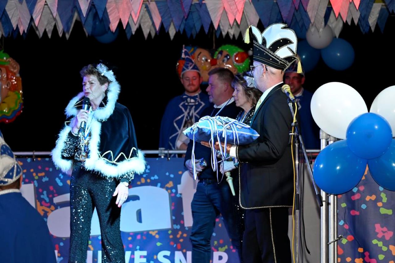 Prinses Ivonne, adjudant Yvonne, jeugdprins Frenk en adjudant Thijs hadden hun leuzen paraat en hun pakken glommen van de glitter en strijk. Prinses Ivonne ging voor de leus: ‘Samen dansen, feesten, drinken: laat nu de glazen maar klinken’. Tijdens de beroemde en beruchte pronkzitting zorgden lokale helden en buutreders Oscar van Leeuwen en Bas Stofjas voor de nodige lachsalvo’s.