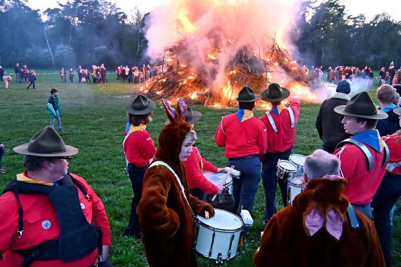 Rond het traditionele paasvuur hing een warme, bijna magische sfeer. Jong en oud kwam samen om te proosten, bij te praten en Pasen te vieren zoals het hoort. Het buitenterrein was gratis toegankelijk en bood volop ruimte voor hapjes, drankjes en gezelligheid met buren en vrienden.