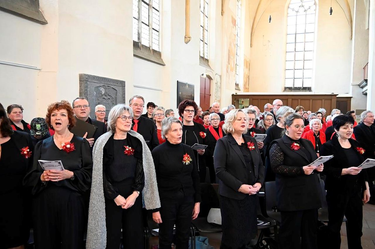 De Grote of Gudulakerk in Lochem vormde op zondag 21 december het sfeervolle decor voor het jaarlijkse koren kerstconcert. Meer dan 500 enthousiaste bezoekers wisten de weg naar de kerk te vinden om te genieten van een afwisselend programma vol zang en samenzang.