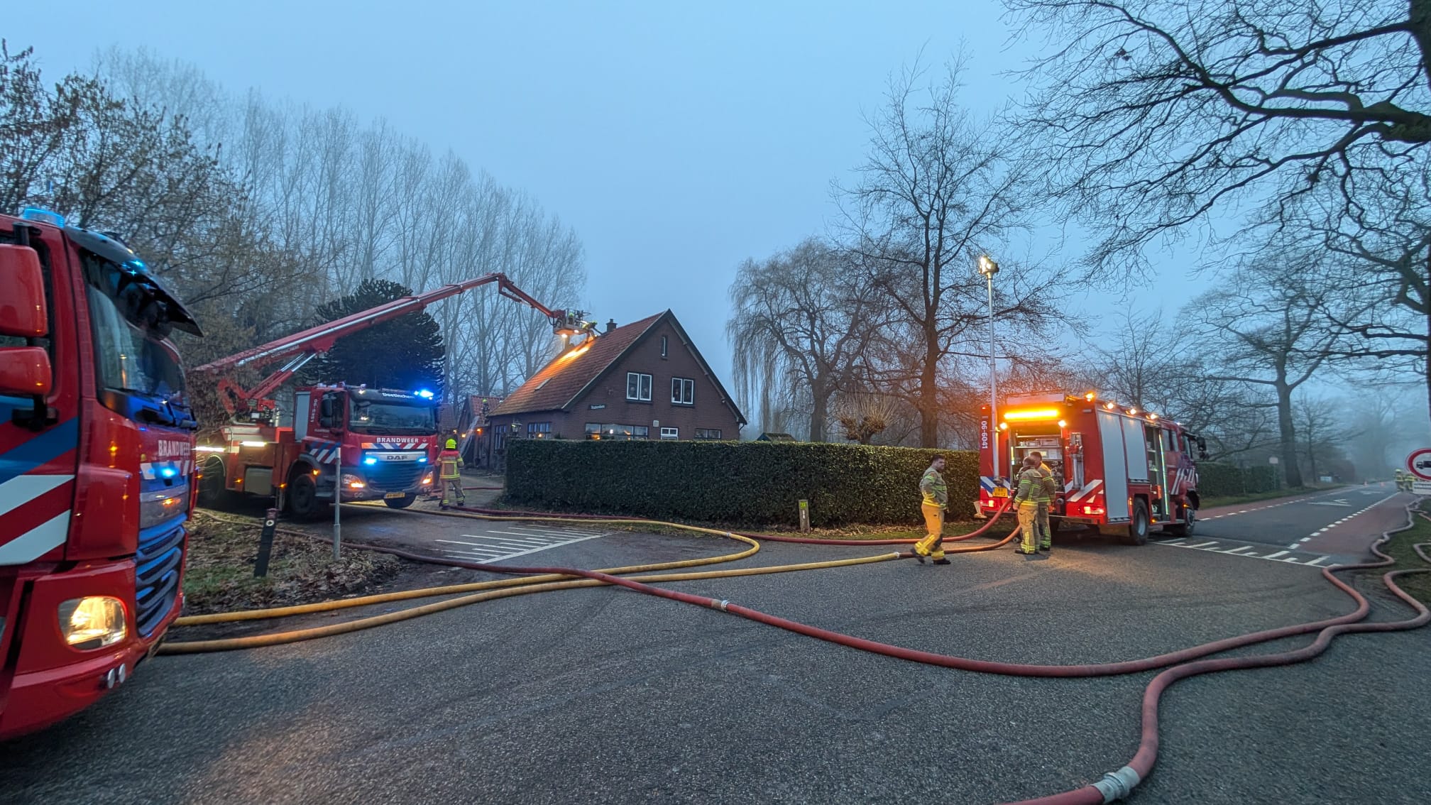 Hoe de brand in de schoorsteen is ontstaan is niet duidelijk. De toegesnelde brandweerlieden wisten de brand na enige tijd te blussen. De hulpdiensten hadden de weg bij het huis tijdelijk afgesloten, maar werd kort na het blussen weer vrijgegeven.