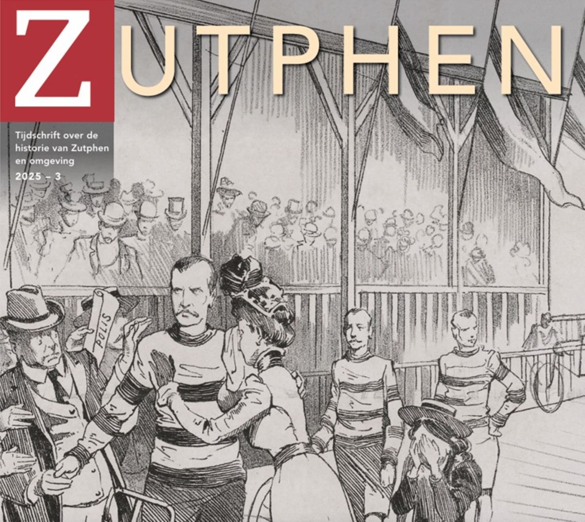 ZUTPHEN, het tijdschrift van de Historische Vereniging Zutphen is weer uit. Op de omslag is duidelijk te zien dat sport, in ieder geval wielersport, een zaak is van kloekmoedige mannen. Vrouw en kind staan erbij en vrezen het ergste, maar neen, moedig voorwaarts. Een wat genuanceerder beeld geeft het artikel over Herman Schaapveld.